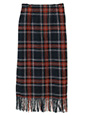 中綿入りの暖かいアウターは、ボリュームがあるので、コーデのバランス調整が必須。Iラインのスカートは瞬時に縦長ラインをつくってくれるので、ボリュームアウターと好相性。シーズナブルなチェック柄で無地のアウタースタイルにも映え、洒落感も満点です。