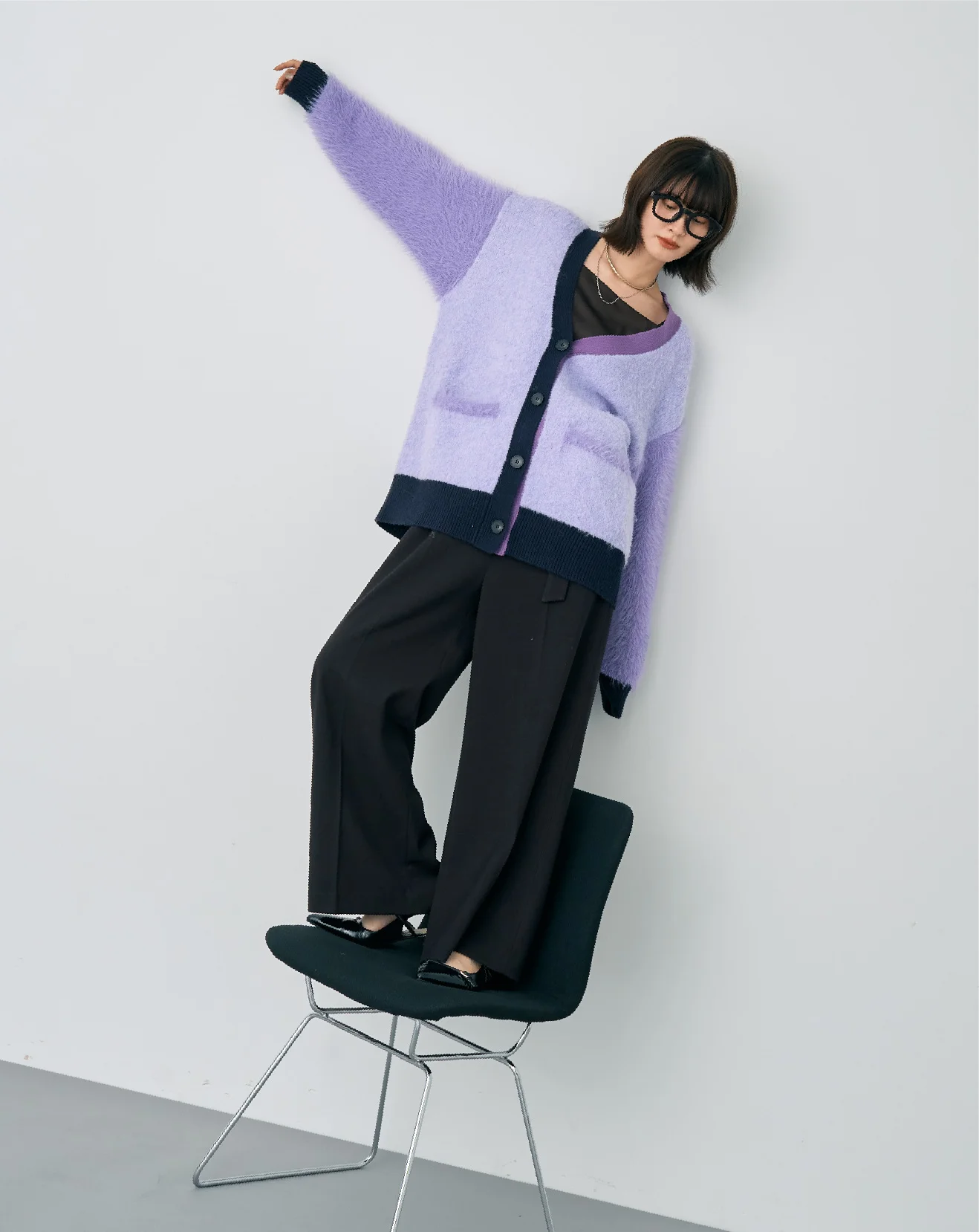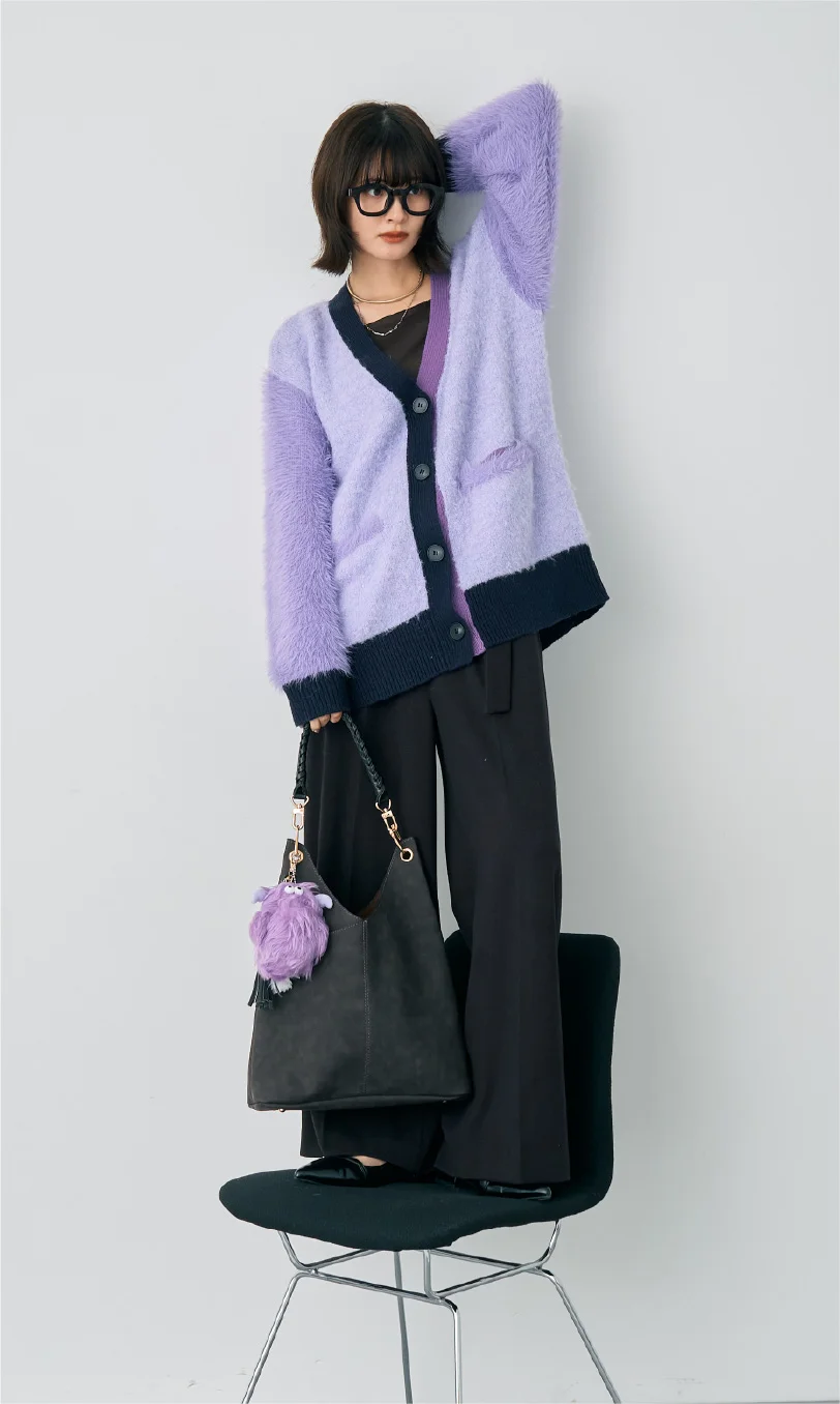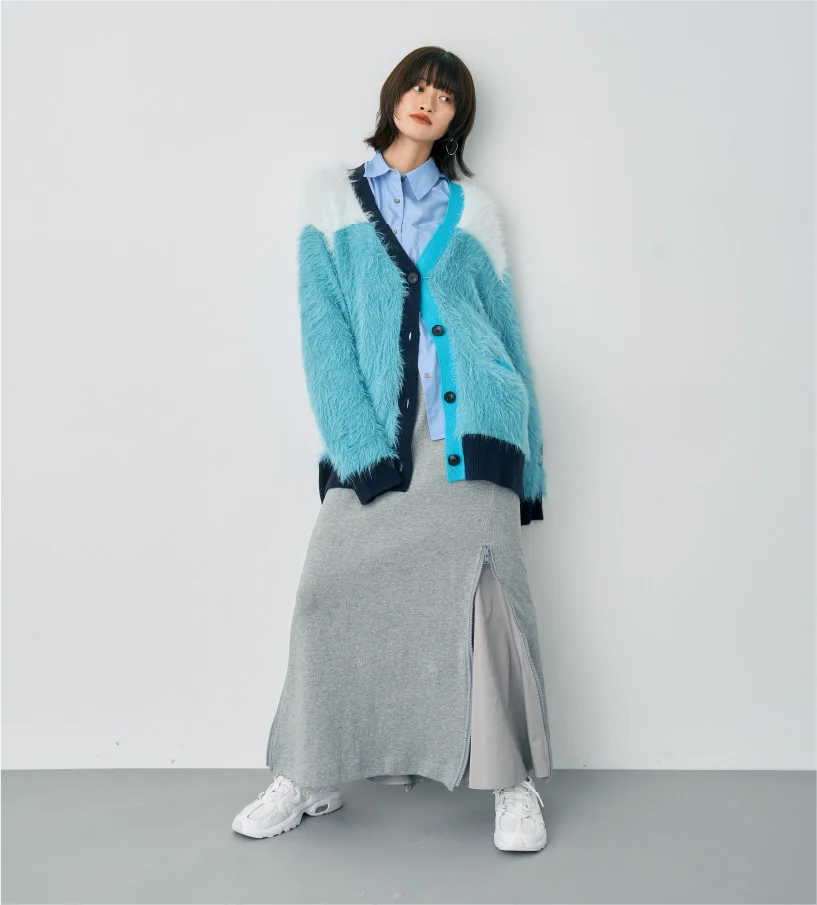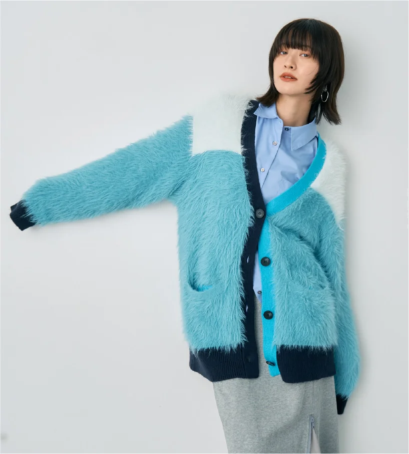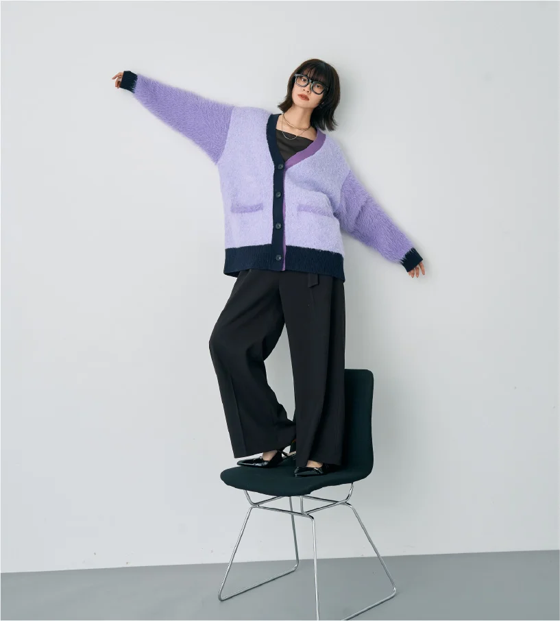 異素材MIXが魅力のカーディガン。