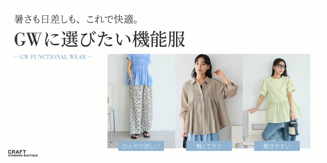 GWコーデにおすすめの新作を、接触冷感・撥水・UV対策などの機能軸でご紹介。