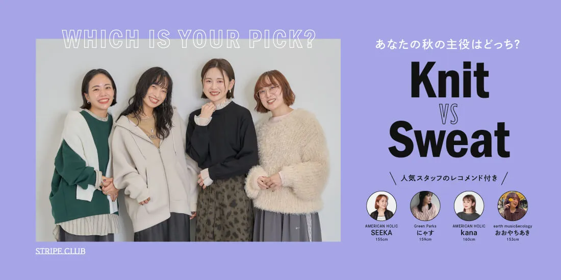 ニット派、スウェット派のスタッフがそれぞれの推しアイテムをご紹介。旬な着こなしもご提案します!