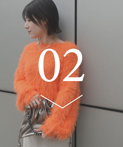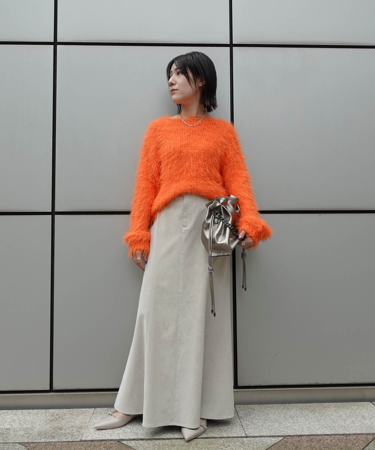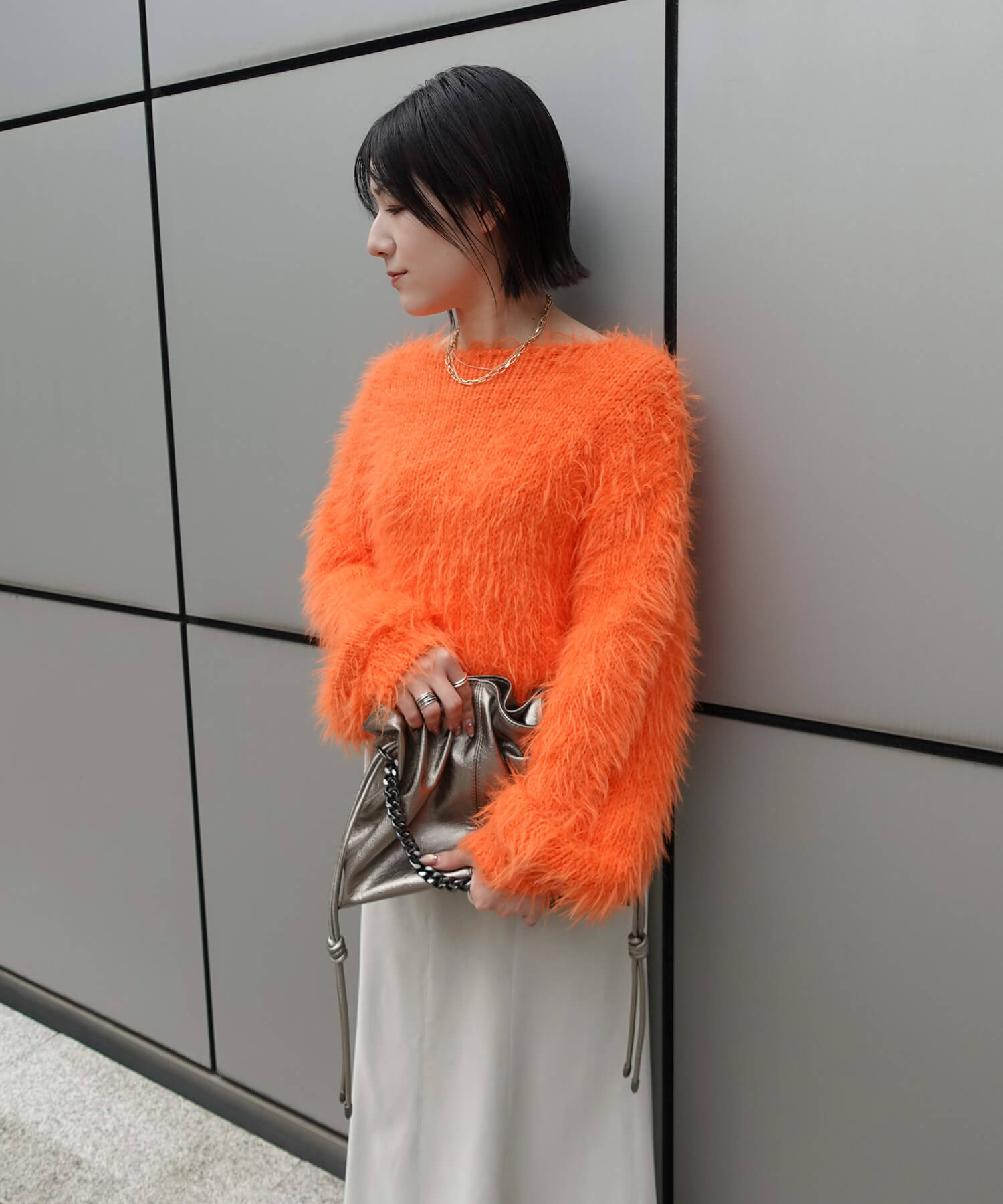 ふんわりとしたフェザーニットの質感に目を惹かれ、