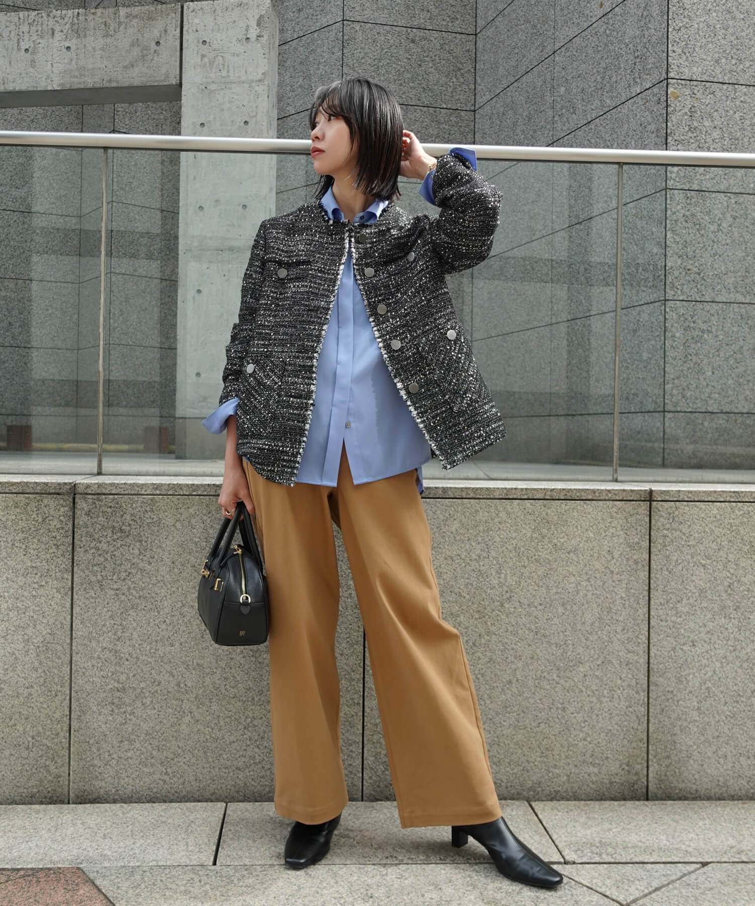 全体がすっきり見え、オーバーサイズのアウターとも好相性。