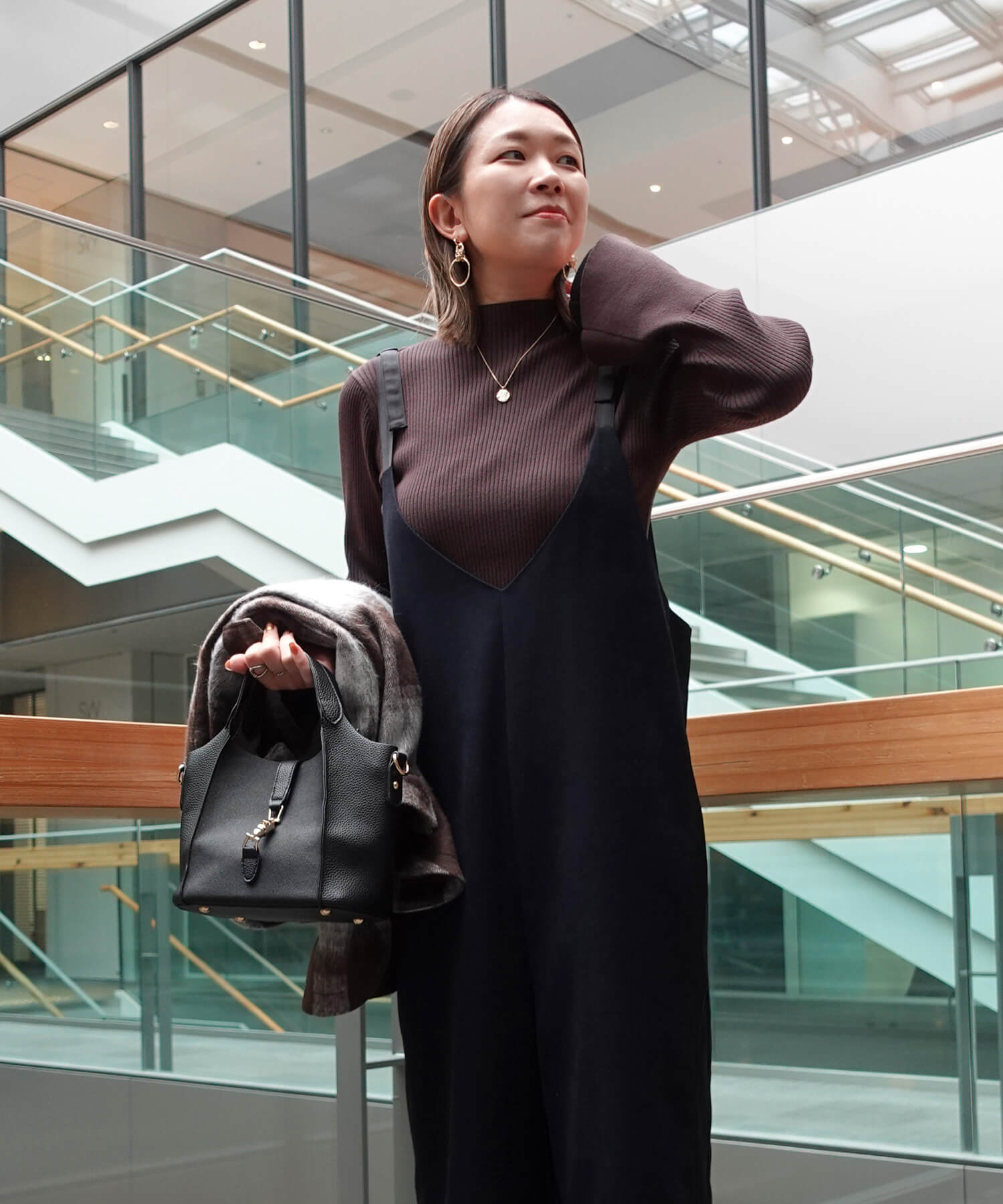 シャープな黒で統一すると甘さを抑えたモード感が出ます。