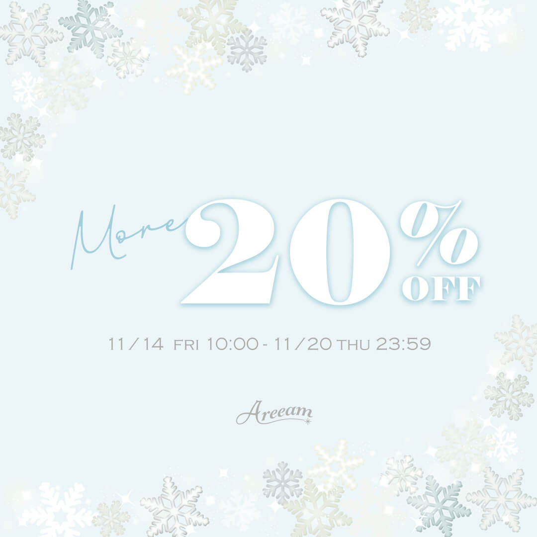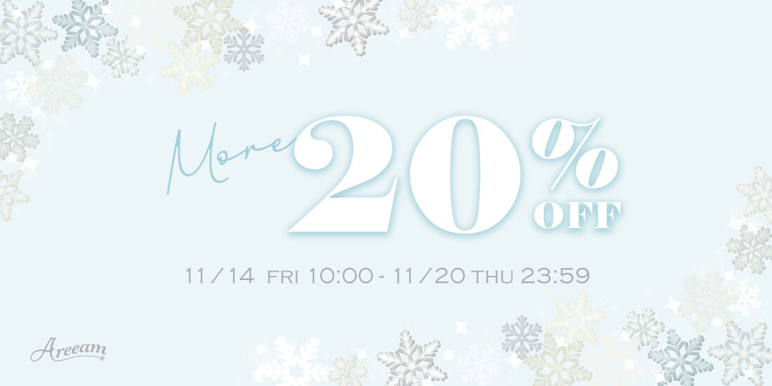- ※「対象アイテムカートインでさらに20%OFF!【Areeam】」と記載のある商品が対象です。アイコンの表示がない商品は対象外です。