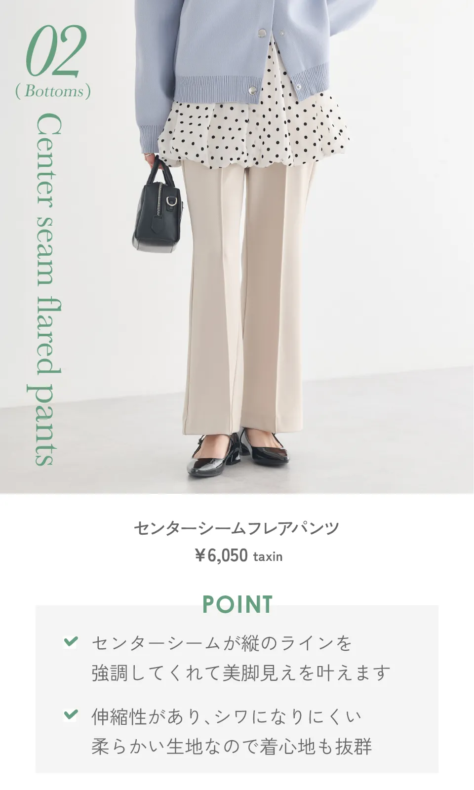 センターシームフレアパンツ