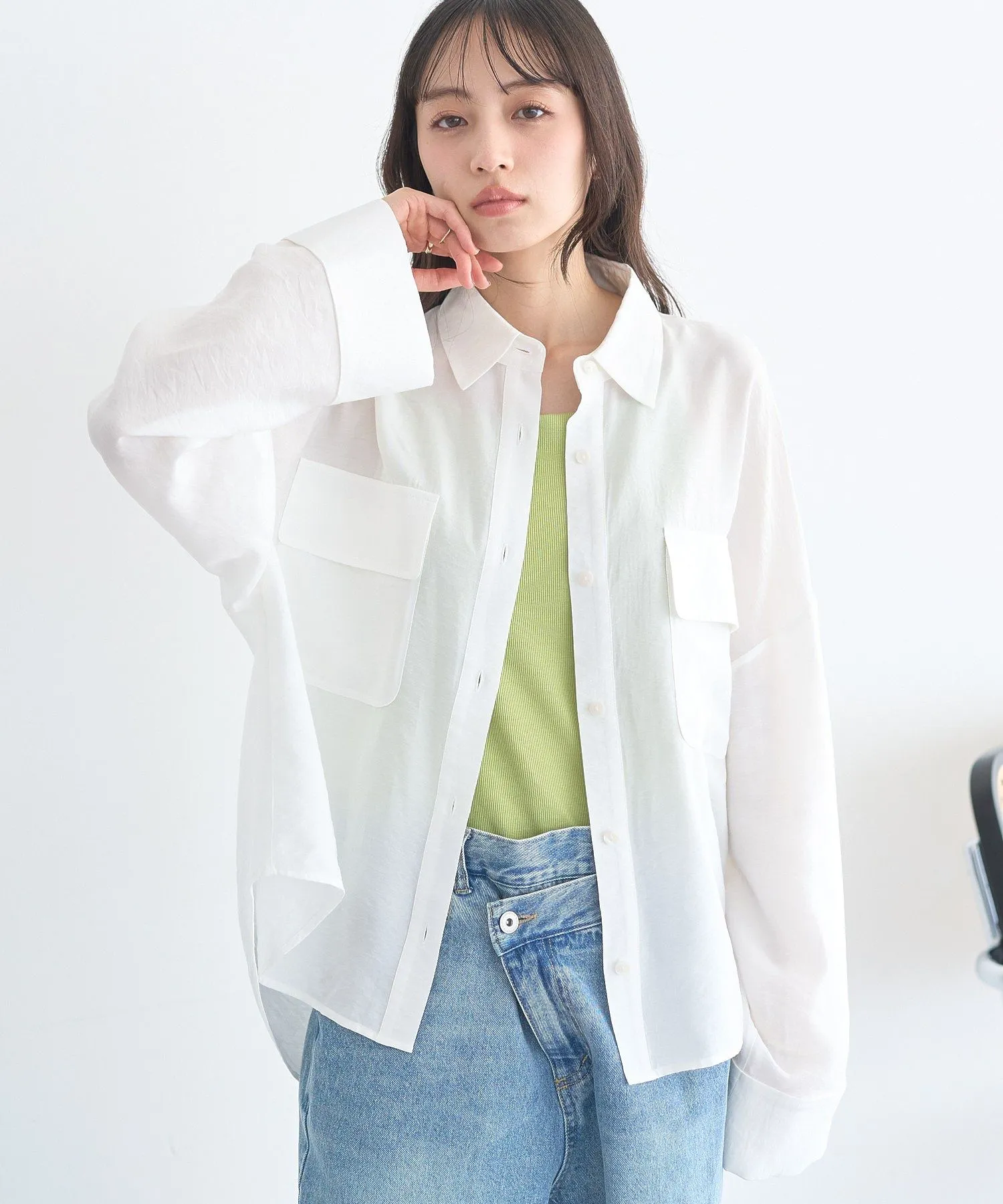 Wポケットシャツほんのり透け感のある軽やかな素材が魅力。
