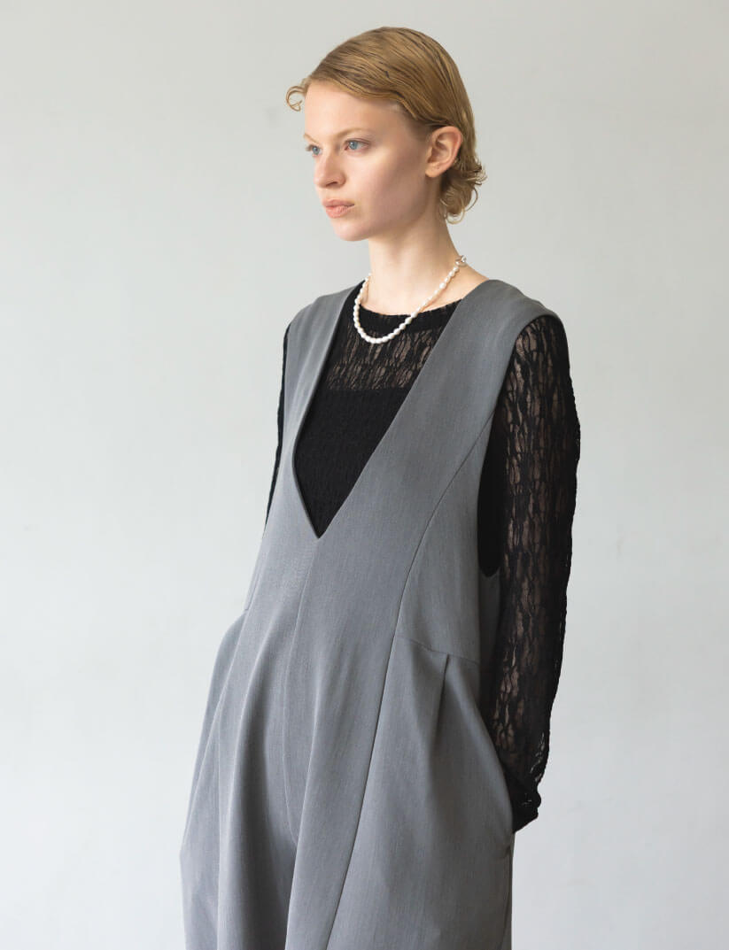 グレーVネックバレルオールインワン