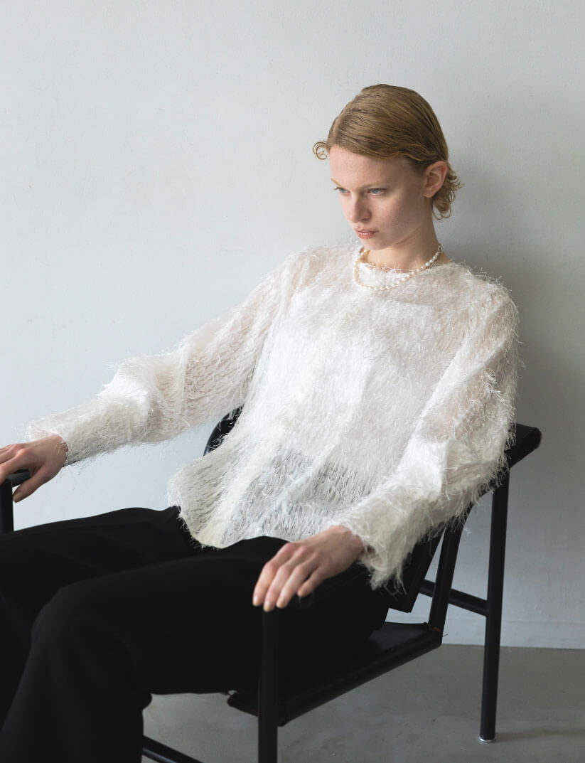 ストレッチレースクルーネックプルオーバー