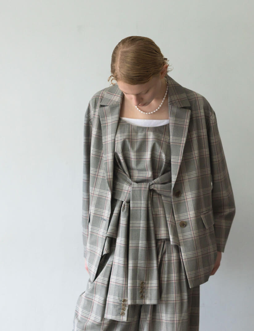 【日本製】チェックジャケットスリーブビスチェ