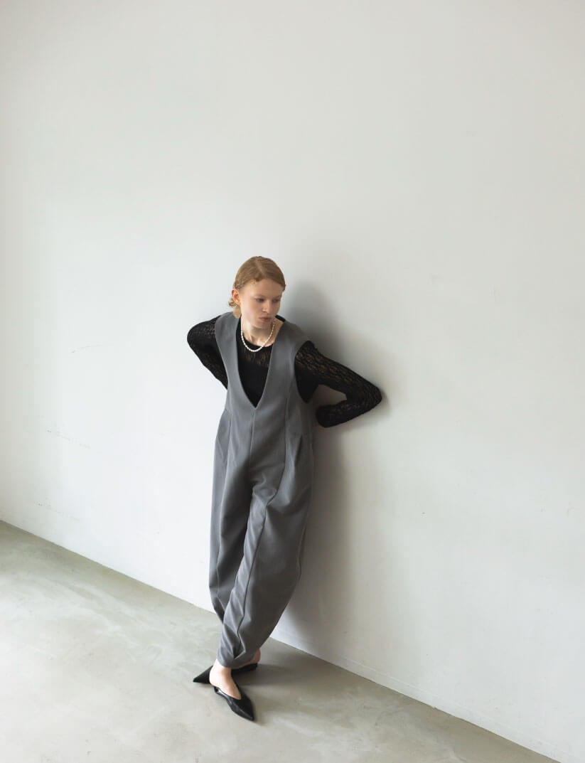 Vネックバレルオールインワン