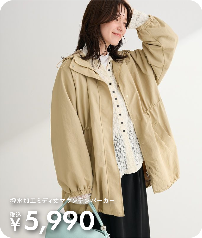 撥水加工ミディ丈マウンテンパーカー