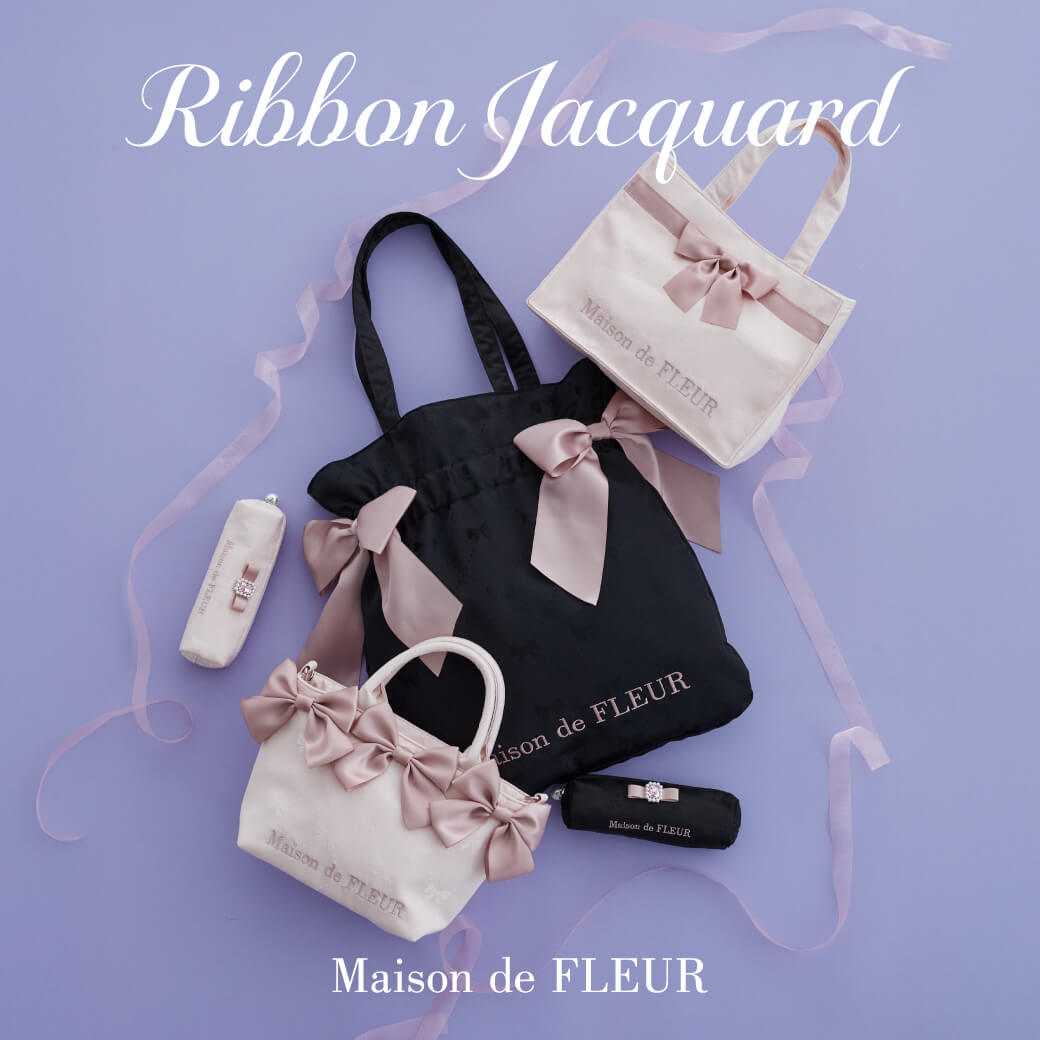 リボンジャカードダブルリボントートバッグ