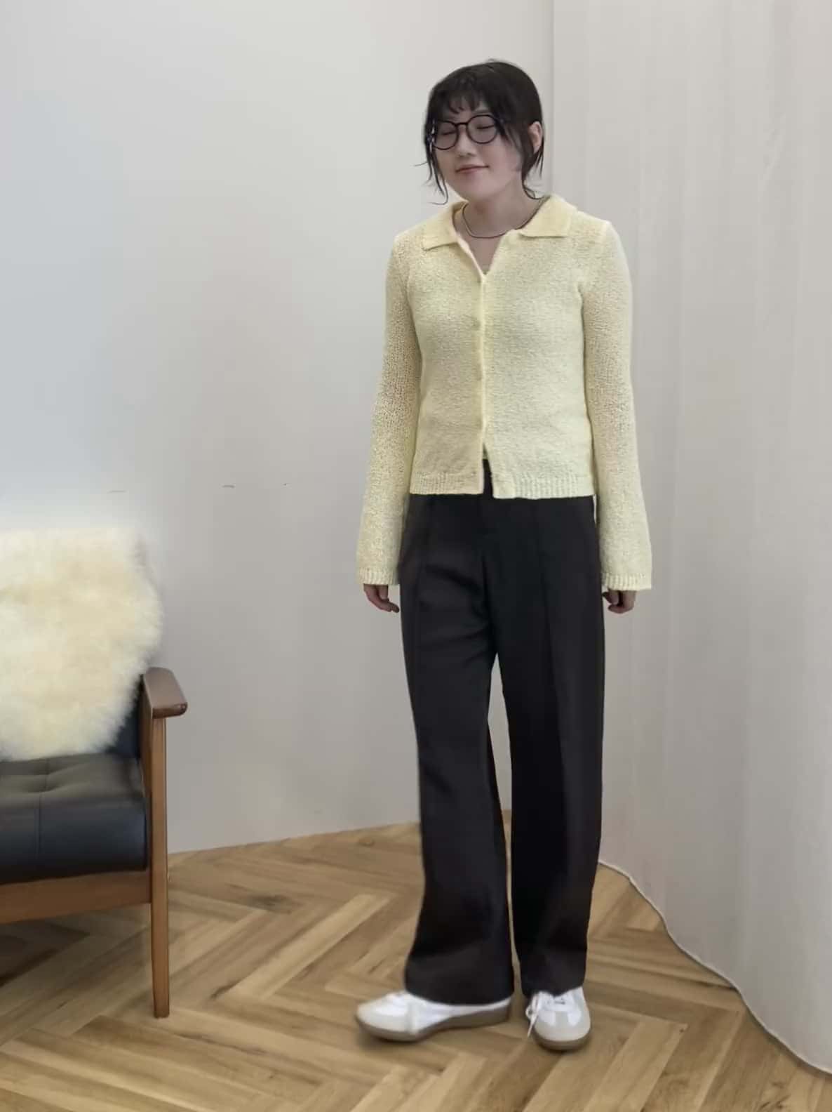 表面感のあるブークレ素材でトレンド感のあるコーディネートを作ることができます。コンパクトなサイズ感で伸縮性があり、着心地もとてもいいです︎︎👍🏻︎︎
