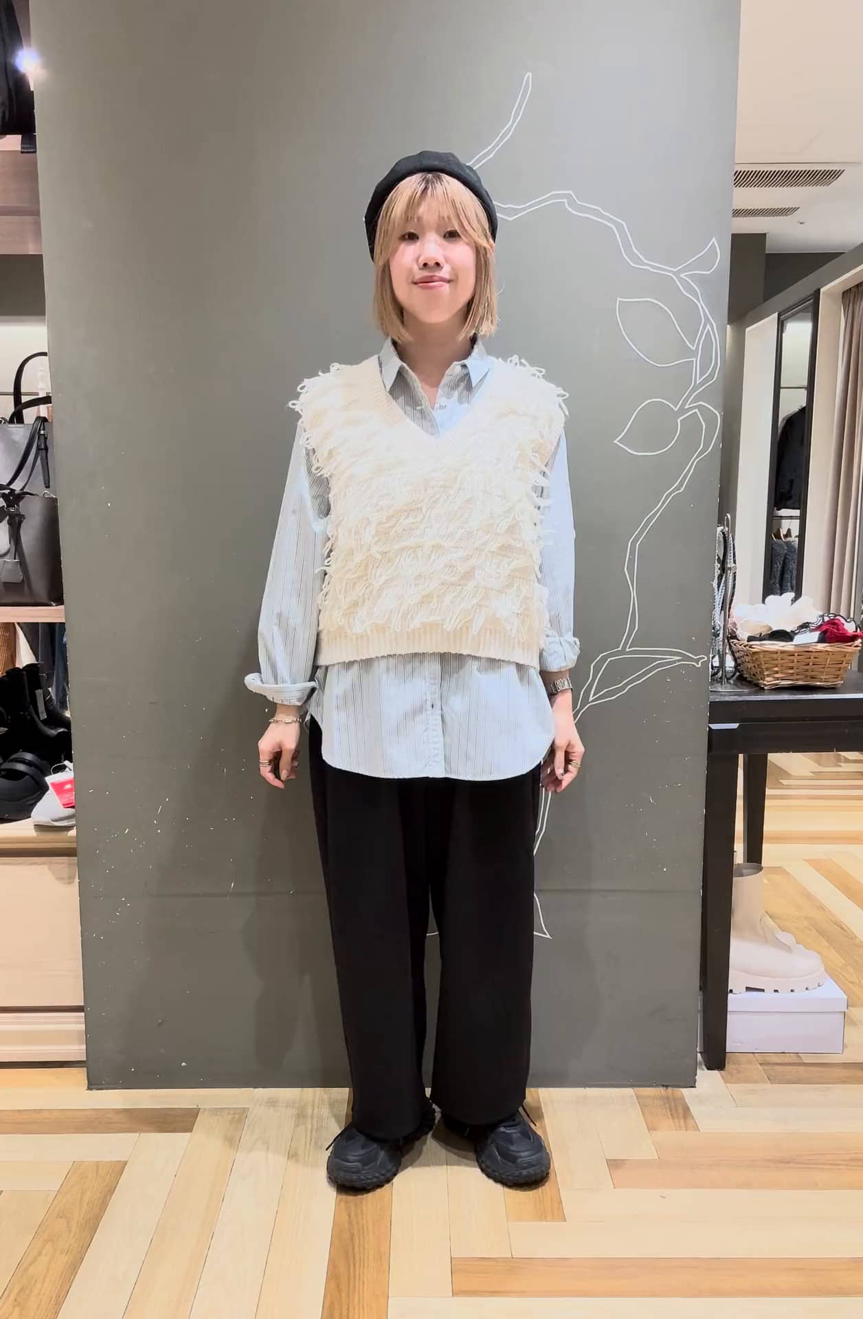 重ね着に便利なループニットベストは、ボリューム感あるループフリンジ編みと深めのVネックデザインがトレンド感を演出。