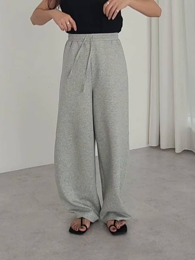 ハリがあり、なめらかさもある生地なのでキレイめなアイテムとも相性が良いスウェットパンツです。