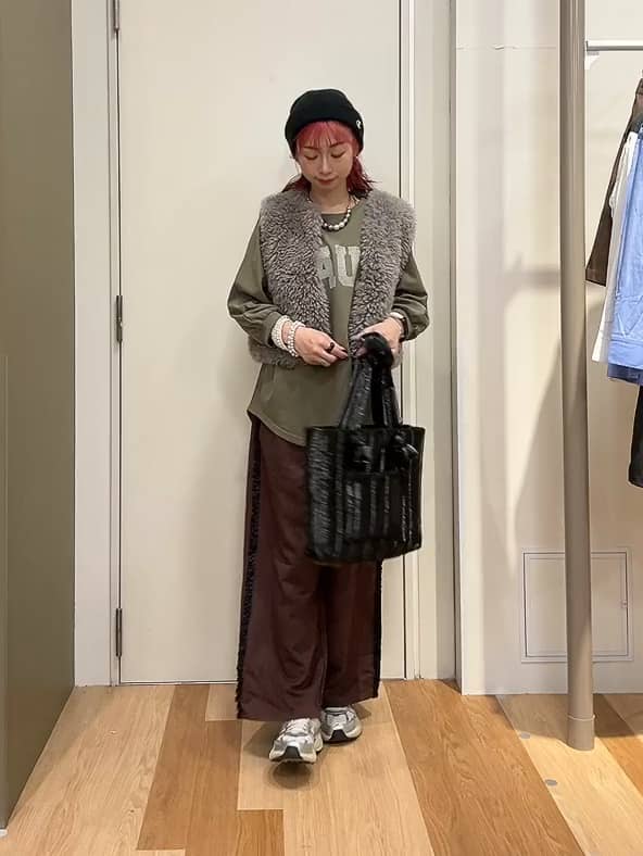 ボリュームのあるボトムスやワンピース合わせがオススメです。