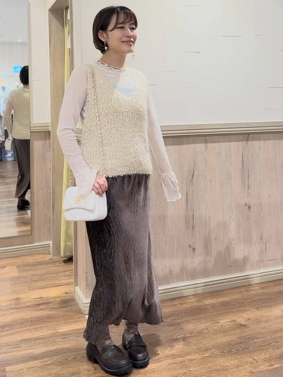 ラメとぽこぽこニットの素材が素敵なベストです◎着心地も柔らかくて、腰にかかる丈感なので使いやすいです♪
