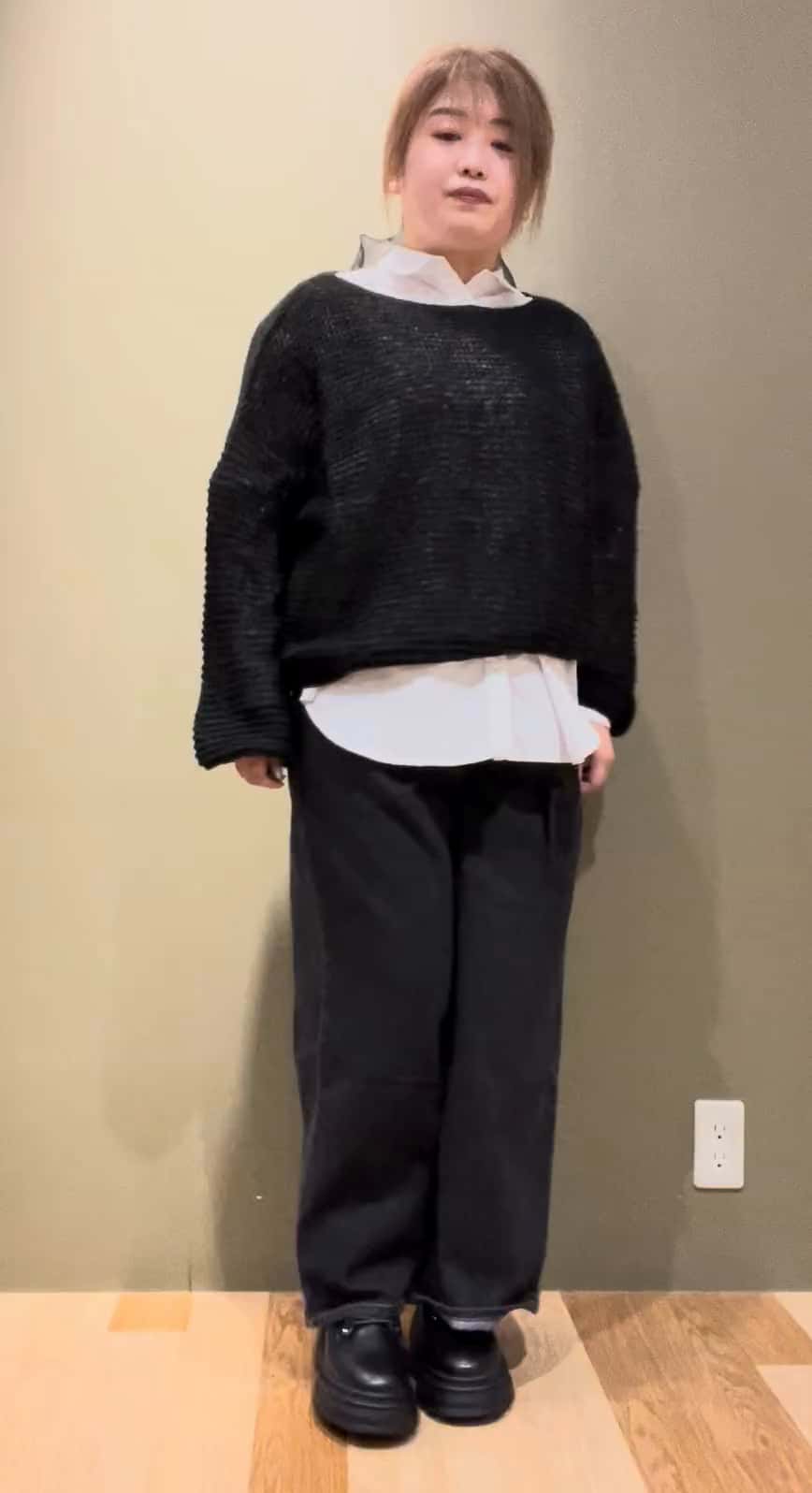 薄手のシアーニットです!薄手で軽い素材感なので、中のインナー次第で今からでも使えるニットになってます!首元も広めなのでスッキリ見えますし、レイヤードしやすいニットになってます
