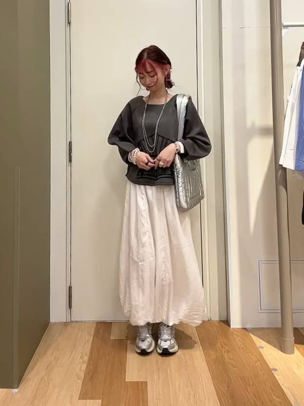 丸みのあるシルエットできれいめボトムスとも相性◎