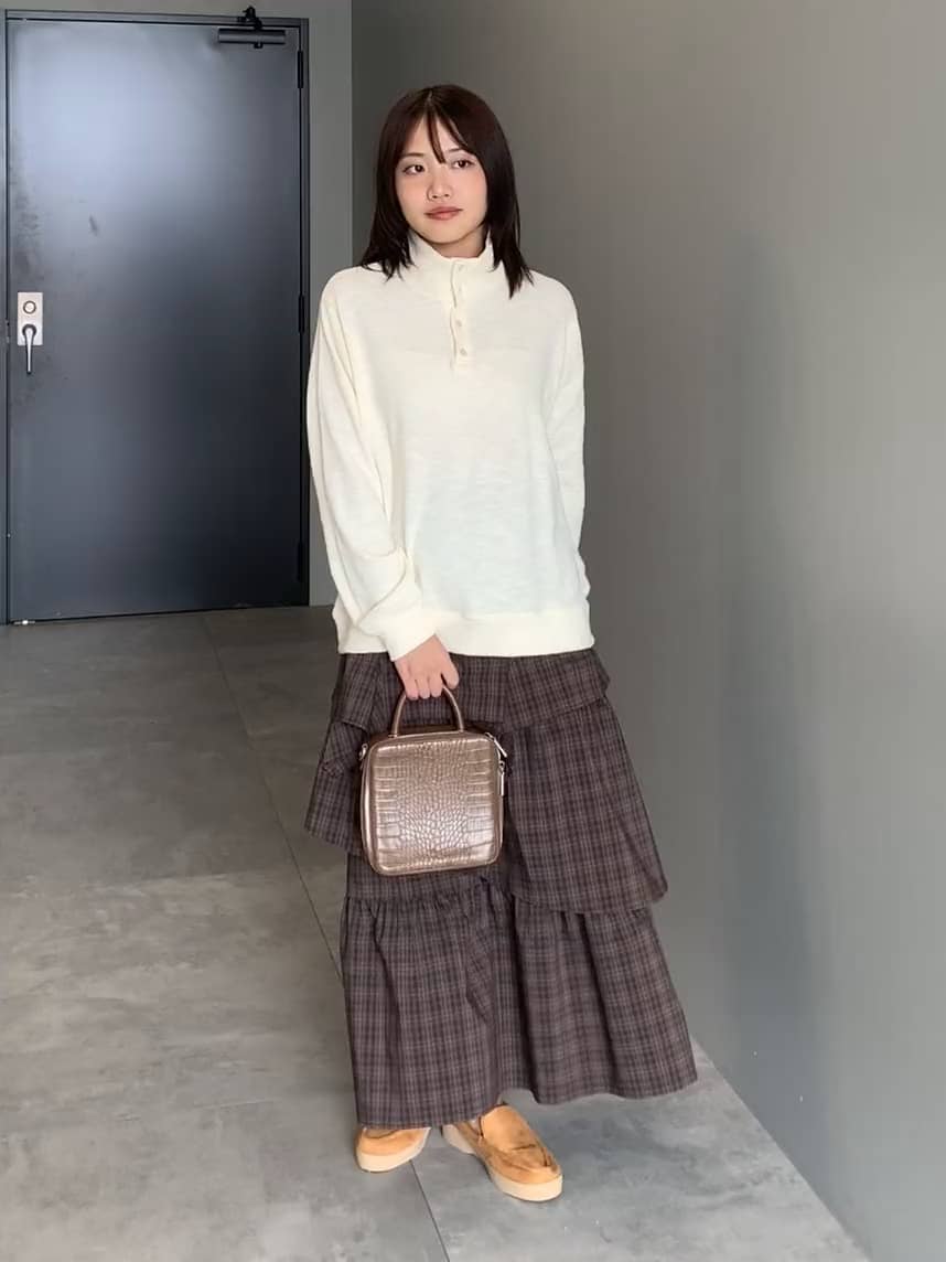 メリハリがしっかりつきながらもガーリーに着こなせるスカート♪デザインが秋らしいブラウンでとてもかわいいです◎