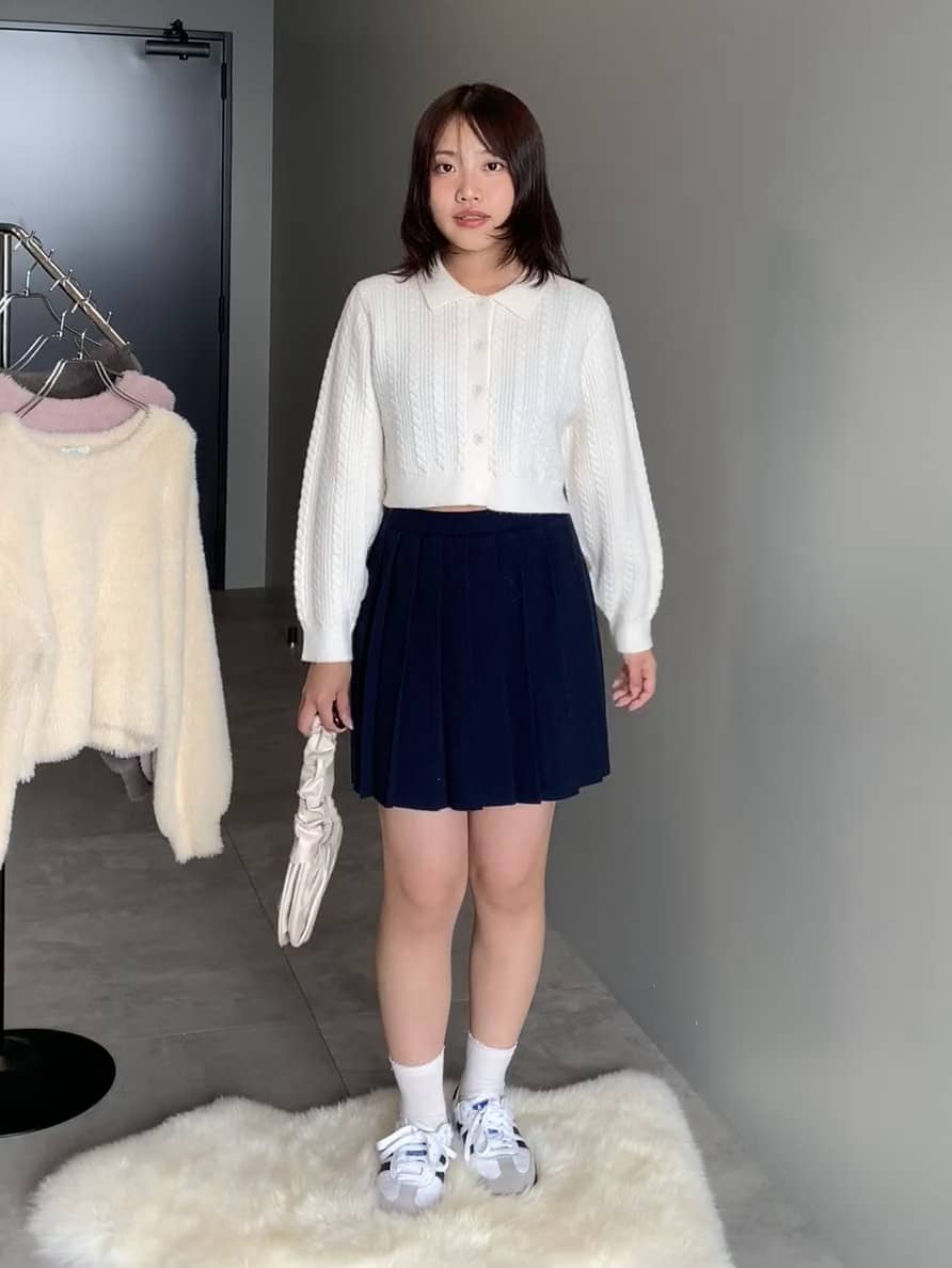ショート丈で脚長効果があるニットアイテム♪柔らかい生地よりかはしっかりとした生地感で綺麗めに着用いただけます◎