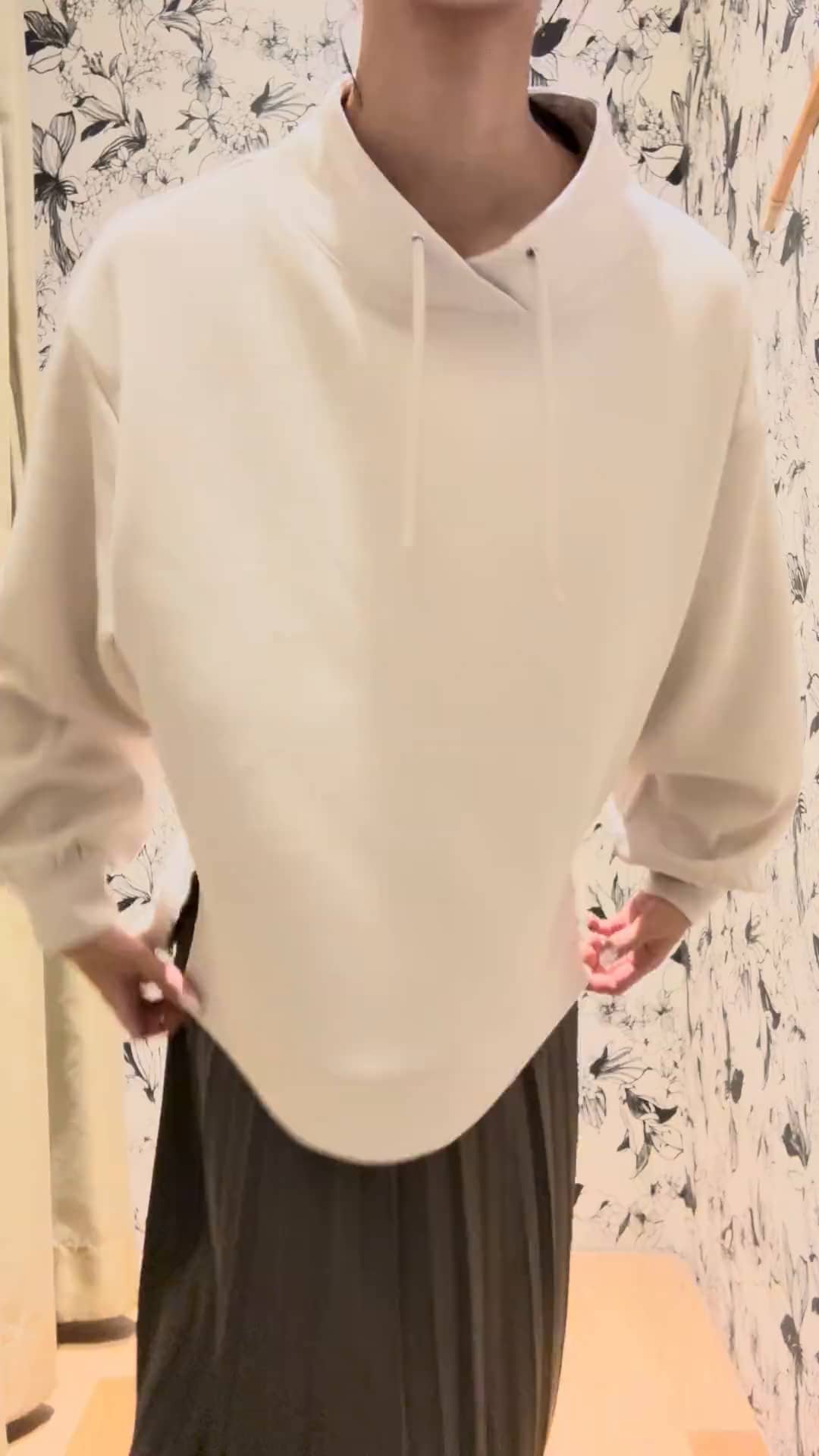シンプルながら洗練されたデザインのダンボール抜け衿プルオーバーは、シワになりにくい素材でお手入れも簡単✨🧺