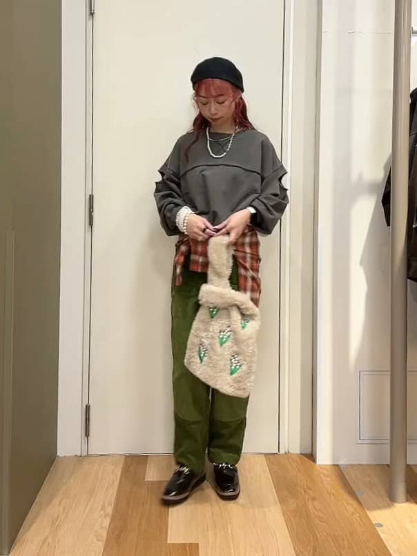 落ち着きがあるカラーを合わせコーデのアクセントに♩