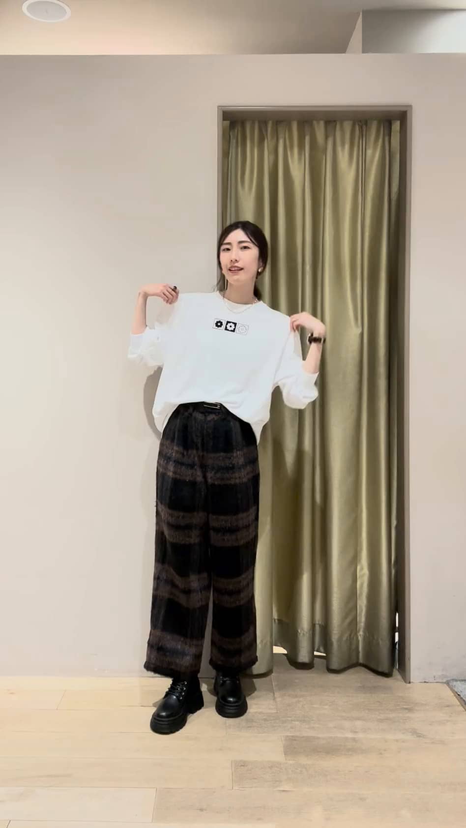 ・大きめチェックがコーデを華やかにしてくれます♡