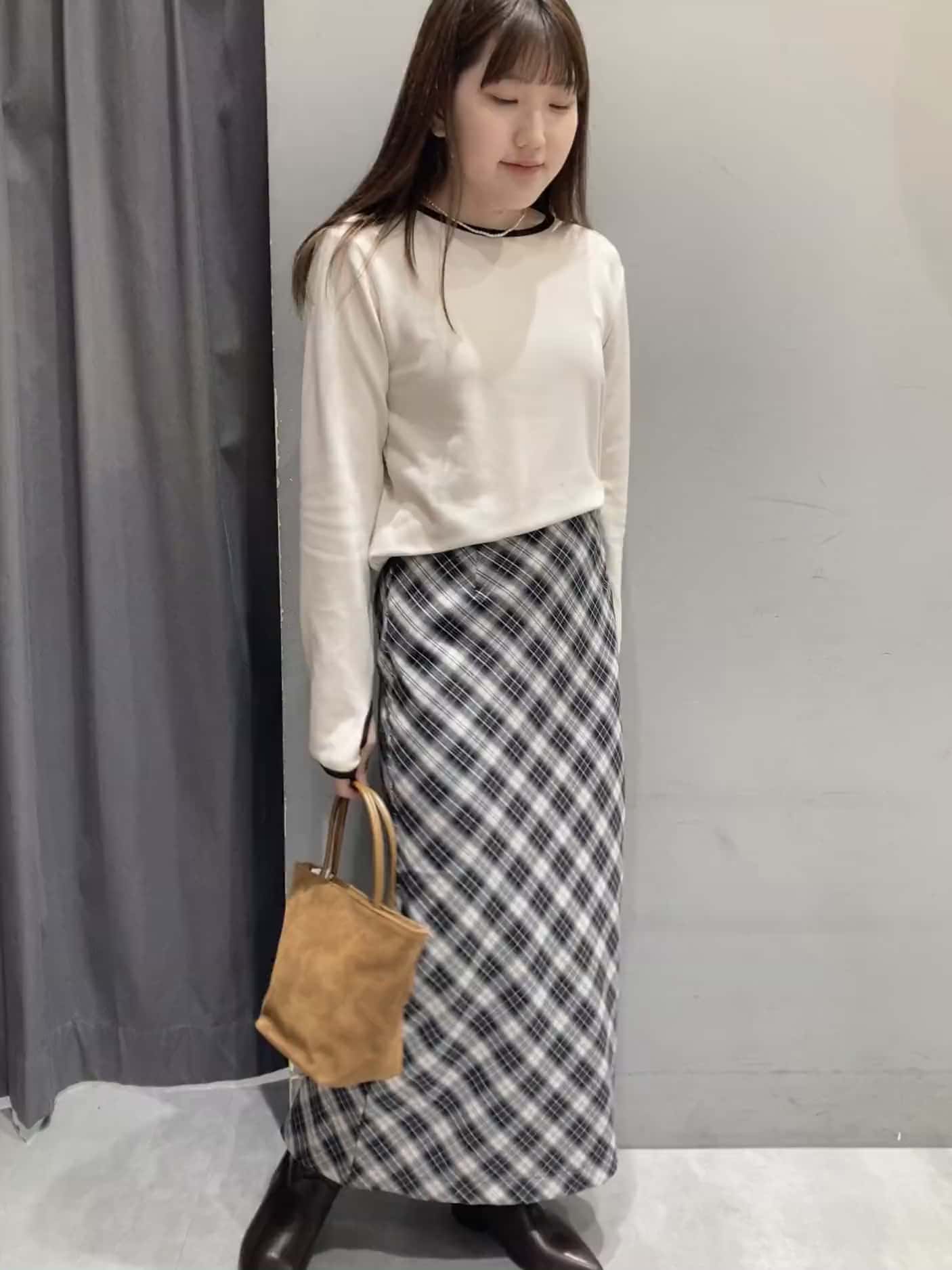 後ろに深めのスリットが入っており、ロング丈のIラインスカートでも快適に着ることができます。素材には程よい厚みと落ち感があり、歩くたびにきれいな揺れ感を演出してくれます。Tシャツやシャツ、ジャケットを合わせてオールシーズン活躍する万能スカートです!