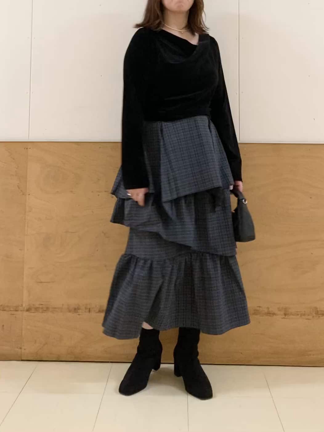 丈はいつものearthのロングスカートに比べるとやや短めに感じたので、スニーカーやパンプスよりはショートブーツがおすすめ