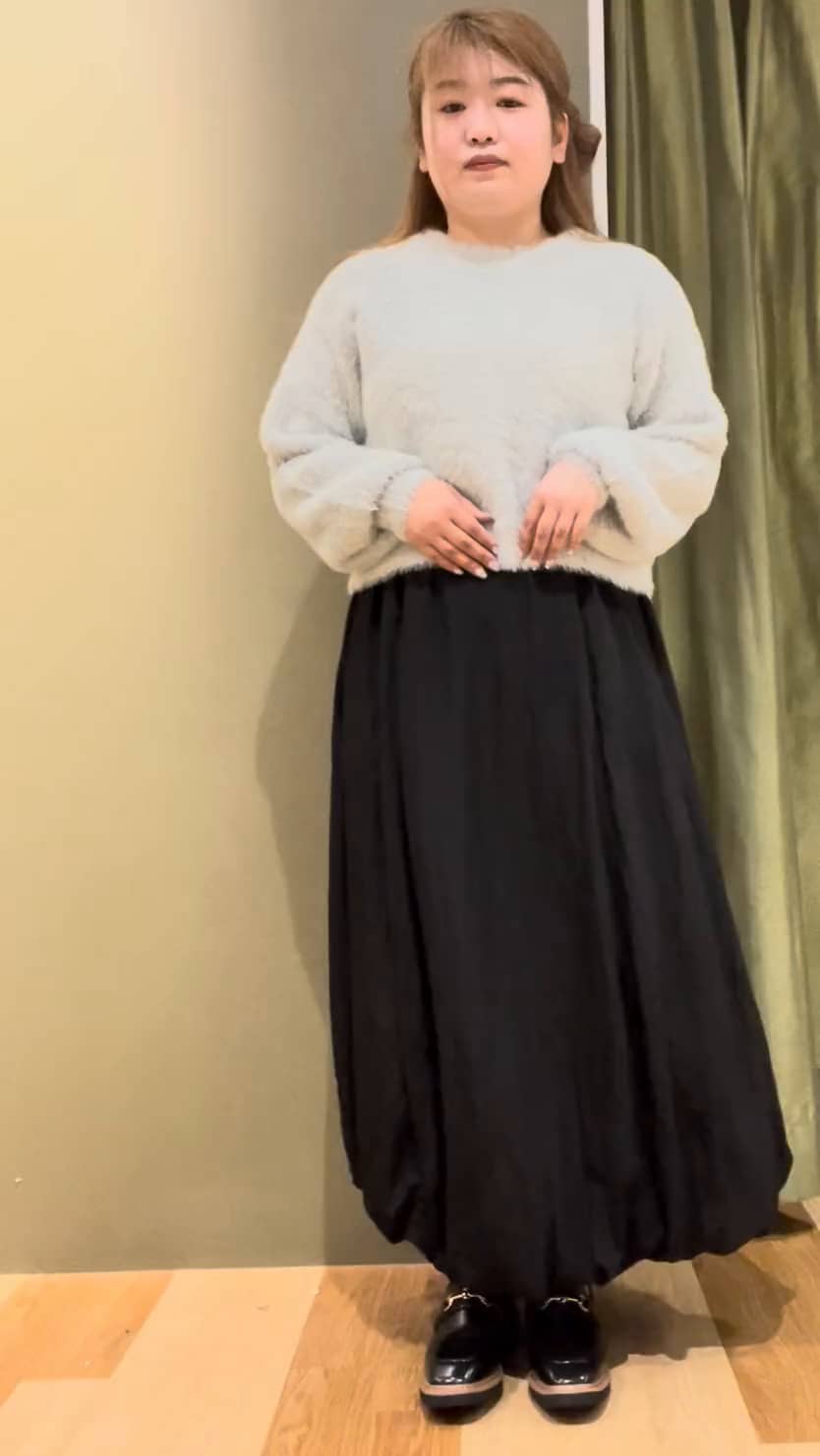 ふんわり触り心地のいいシャギーニットです。肌触りもいいので、チクチクしたりもなかったです!丈感も長すぎず短すぎずなので、インしなくても着用◎