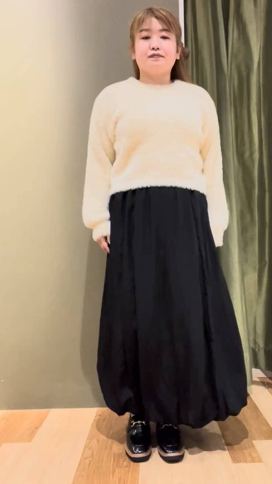 ふんわり触り心地のいいシャギーニットです。肌触りもいいので、チクチクしたりもなかったです!丈感も長すぎず短すぎずなので、インしなくても着用◎