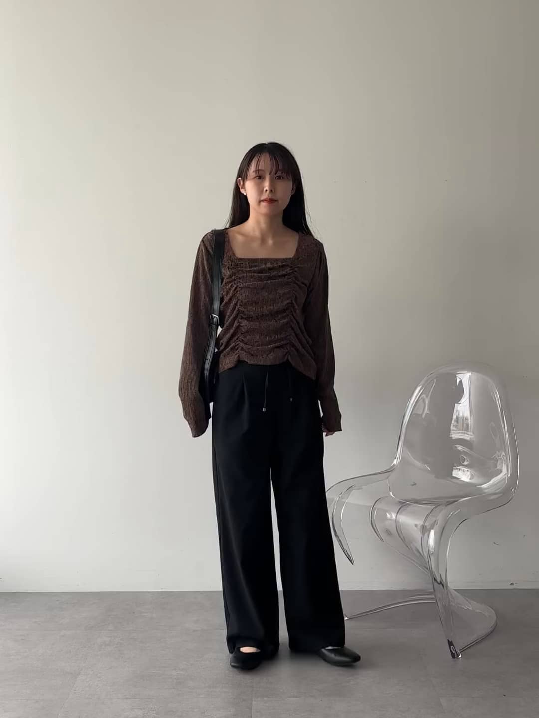 着るだけでレディな雰囲気になるデザインプルオーバーで秋コーデです