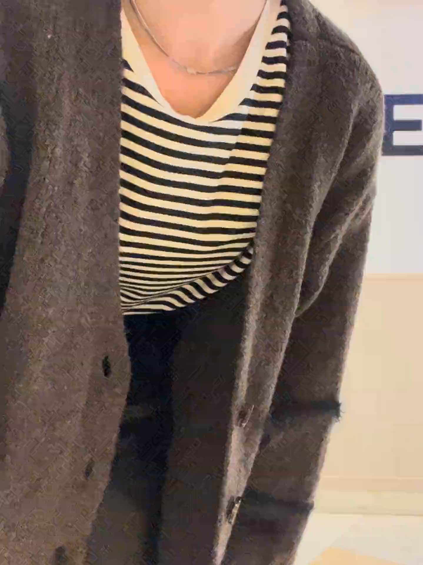 🌰ニュアンスライン柄Vネックカーディガン