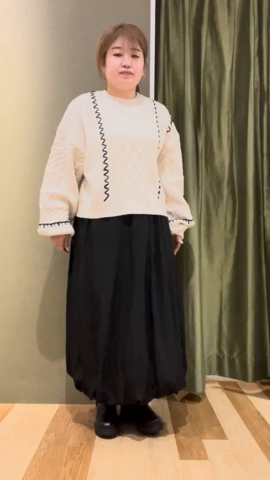 ハンドステッチ風の配色がこなれ感を出してくれます!肩落ちしたデザインと、ボリュームのある袖がフェミニンな雰囲気にも合わせてくれます!バランスの取れやすいトップスになってます!