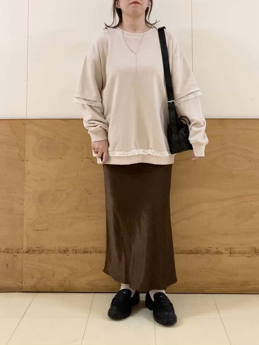 部屋着っぽくなりがちなスウェットですがレースで甘さがプラスされていてカジュアルになりすぎず着やすいデザインです