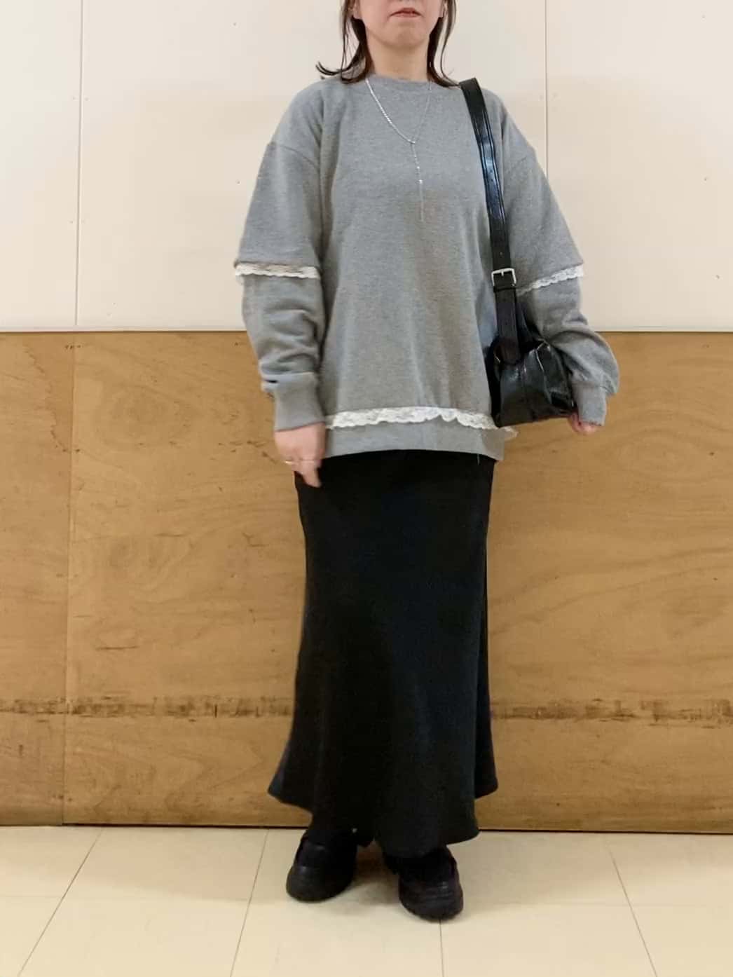 部屋着っぽくなりがちなスウェットですがレースで甘さがプラスされていてカジュアルになりすぎず着やすいデザインです