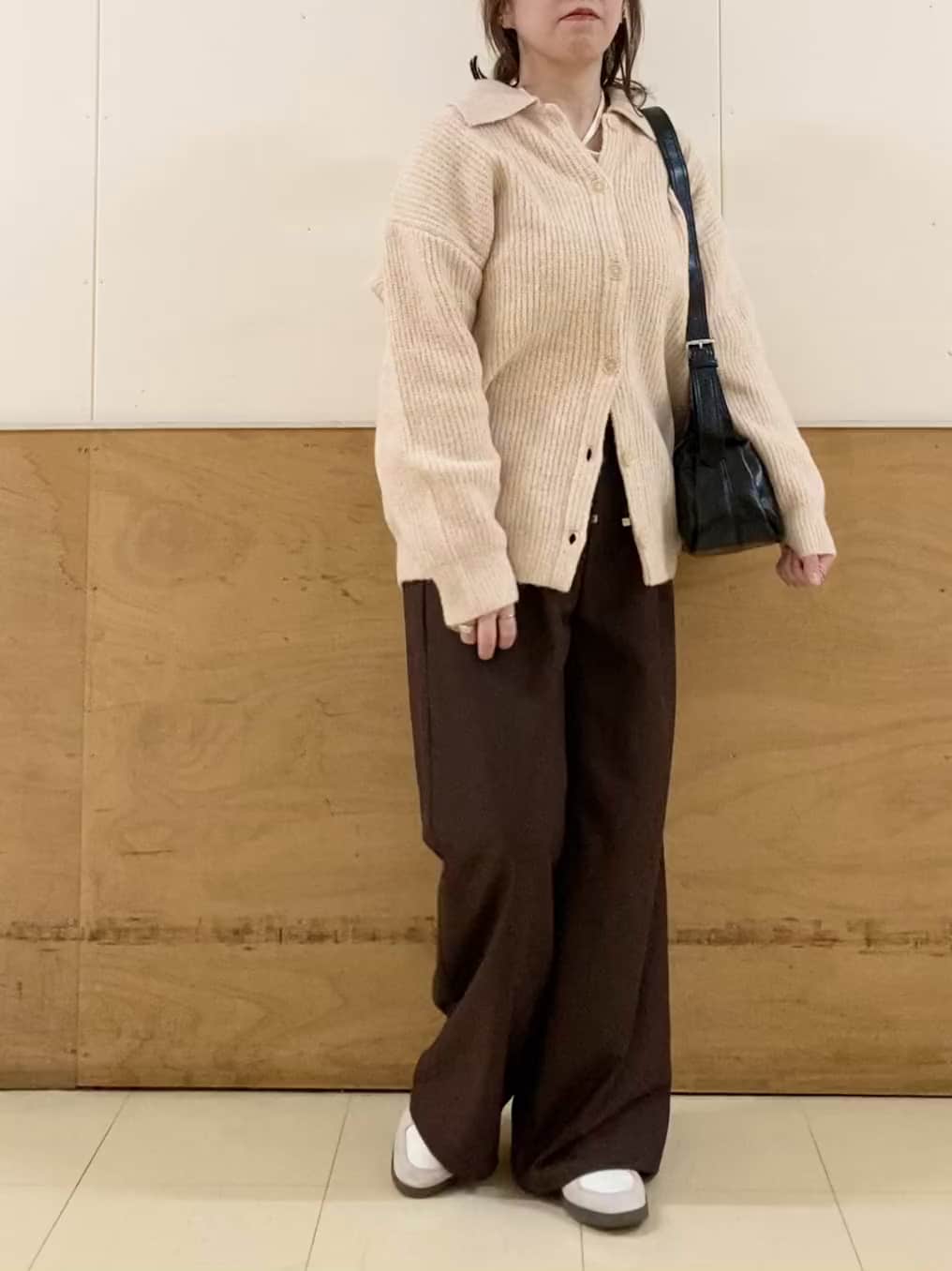 ゆったりとしたワイドパンツで何にでも合わせやすいです!